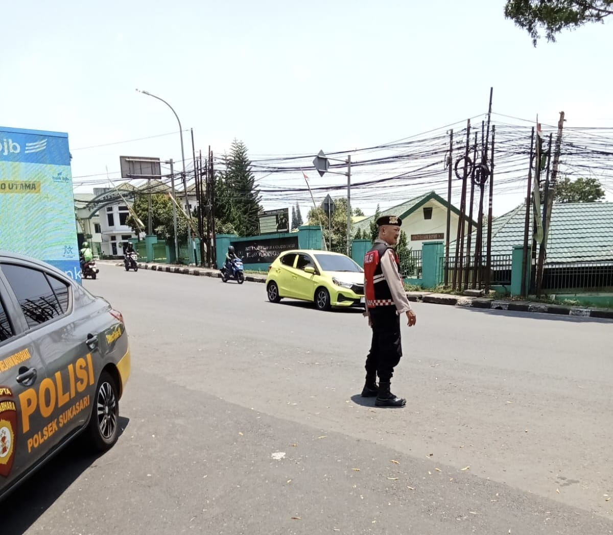 Guna mengantisipasi terjadinya kemacetan di siang hari QR Polsek Sukasari Lakukan Giat Protap Yanmas siang Pengaturan Arus Lalulintas Jl.Perintis Kelurahan Sarijadi Kecamatan Sukasari Kota Bandung.