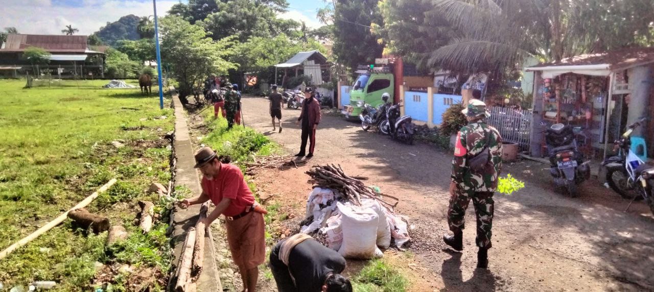 Gotong Royong TNI Dan Masyarakat Ciptakan Kebersamaan Di Desa Ciro-Ciroe