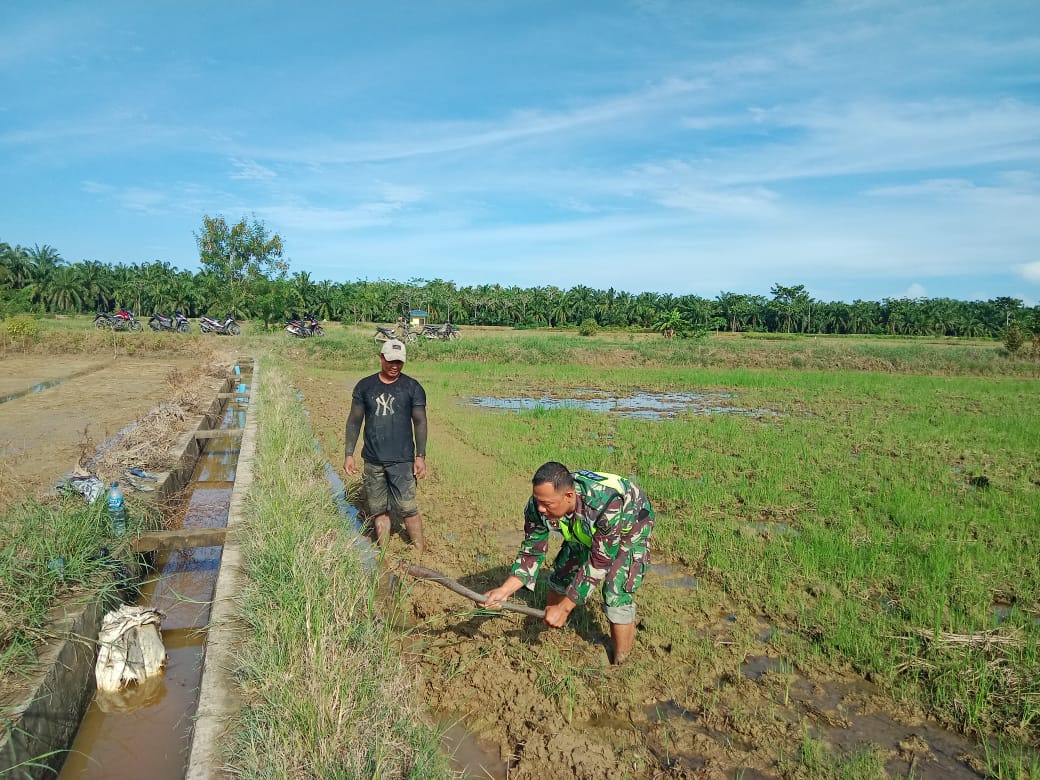 Inilah salah satu wujud kecintaan Babinsa terhadap para warga dan petani di setiap desa binaannya. Meskipun berseragam loreng, Babinsa tak pernah ragu untuk turun ke sawah, apakah mencangkul atau pekerjaan lainnya.