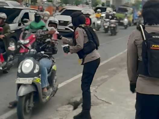Sejumlah personel berseragam turun langsung ke jalan, bukan untuk patroli biasa, melainkan membawa senyum dan paket takjil untuk para pengguna jalan.