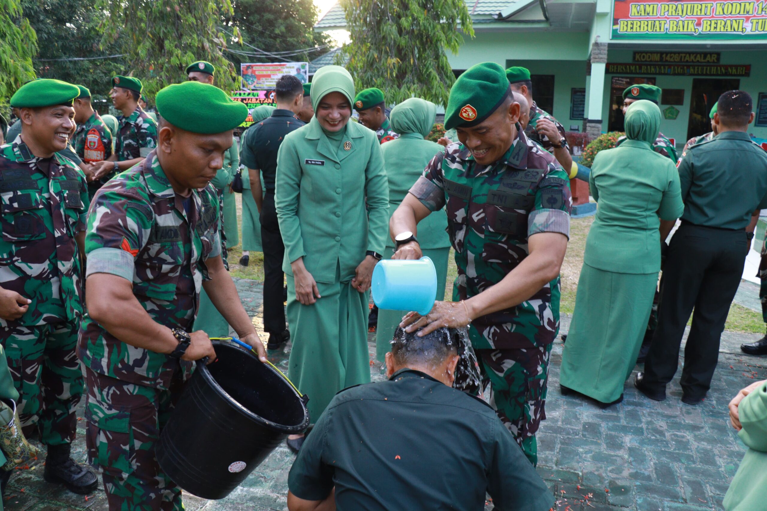 Kenaikan pangkat tersebut ditandai dengan penanggalan pangkat lama dan pemasangan pangkat baru oleh Dandim 1426/Takalar kepada tiap-tiap perwakilan personel yang naik pangkat.