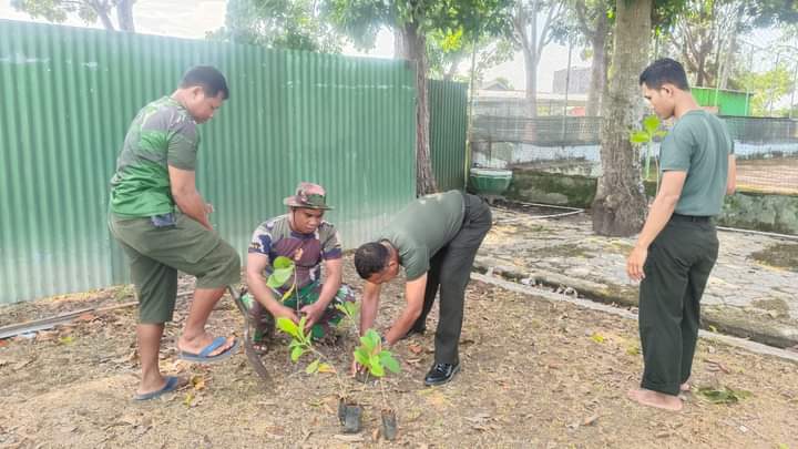 JURNALPOLRI.MY.ID, Sidrap – Komandan Pasiter Kodim 1420/Sidrap, Lettu Inf Alimuddin, bersama anggota staf Makodim 1420/Sidrap melaksanakan aksi penanaman pohon di lingkungan Asrama yang terletak di Jl. Jend. Sudirman, Kelurahan Majelling Wattang, Kecamatan Maritengngae, Kabupaten Sidrap pada Senin (24/06/2024). Kegiatan ini bertujuan untuk meningkatkan kualitas lingkungan sekitar asrama dengan menanam 200 bibit pohon jenis kayu keras, terutama pohon jati merah.