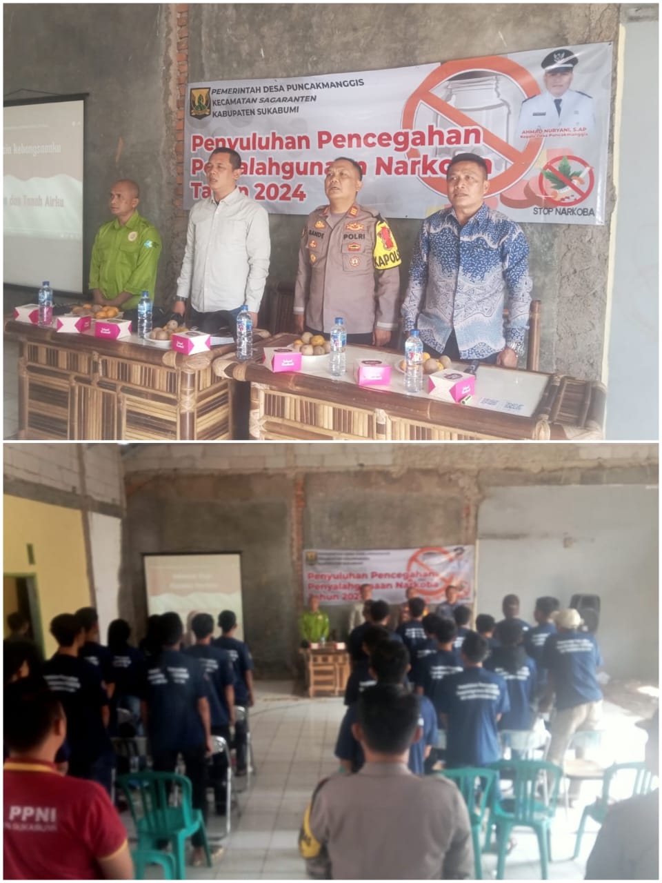 Di kemukakan kepala Desa Puncakmanggis Ahmad Nuryani, S.AP. bahwa Kegiatan mengedukasi masyarakat akan kepedulian terhadap Pemberantasan Dan Peredaran Narkoba di Gelar di Aula Desa Puncakmanggis. Hadir dalam Camat Sagaranten Ridwan Agus Mulyawan, S.Ip. M.Si., Kapolsek Sagaranten AKP. A. Suryana B, SH., Danramil 0622-11 Sagaranten Kapten Inf. Didik, Kepala UPTD Puskesmas Sagaranten Sudarna Suk mana, SKM.MM.Kes, Staff Kesehatan diPuskesmas Yogi, BPD, LPM, Karang Taruna, Tokoh Agama, Tokoh Pemuda dan unsur lainnya.