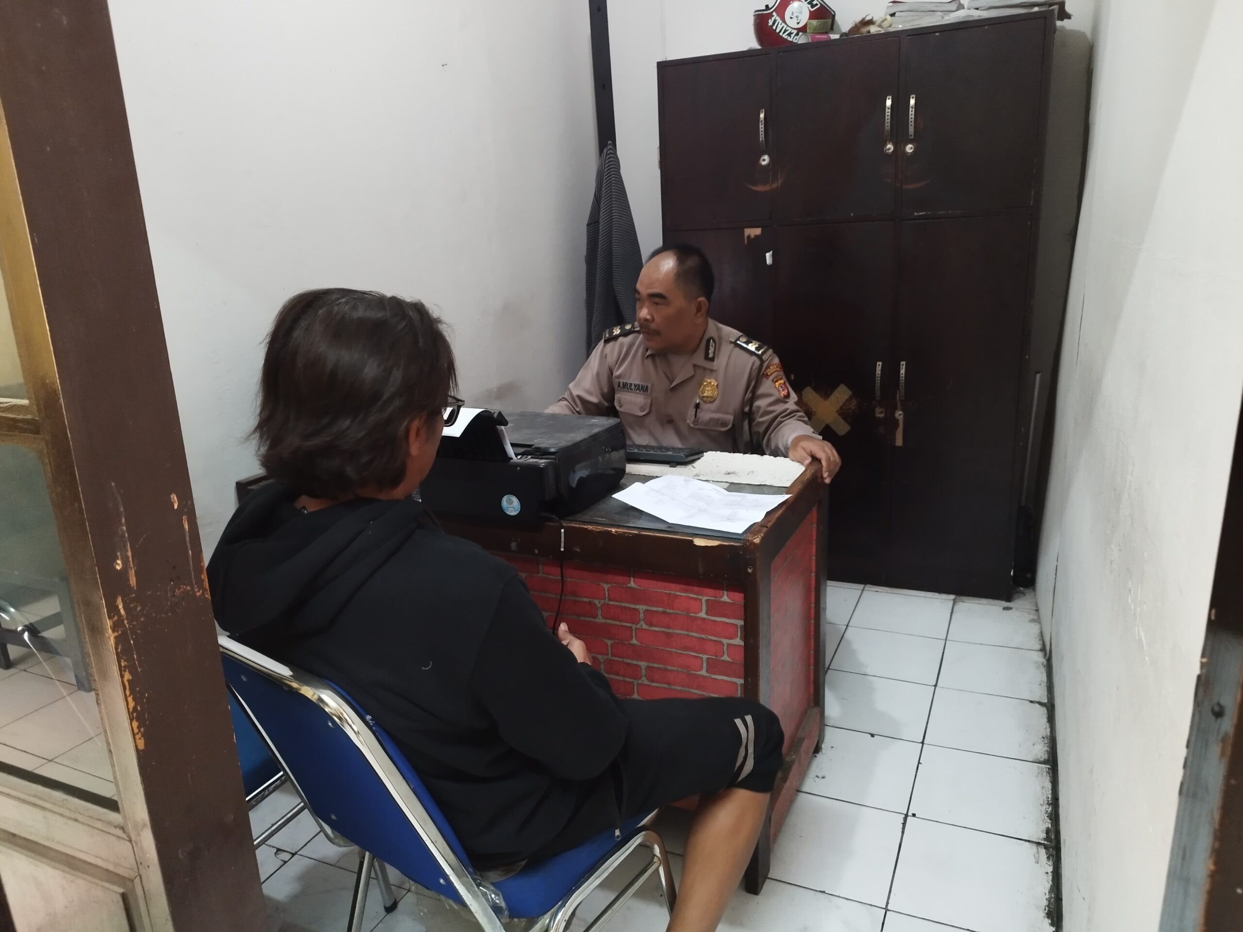 JP – Cileunyi – Ka SPKT Regu I Polsek Cileunyi Polresta Bandung Polda Jabar Aiptu Ana Mulyana memberikan pelayanan pembuatan Surat Keterangan Tanda Lapor Kehilangan (SKTLK) dari masyarakat, Senin (2/9/2024)