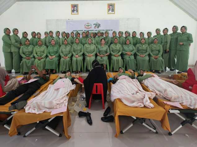Tak hanya donor darah, 30 anggota Persit juga mengikuti pemeriksaan Sadanis, tanda-tanda vital (TTV), serta tes gula darah.
