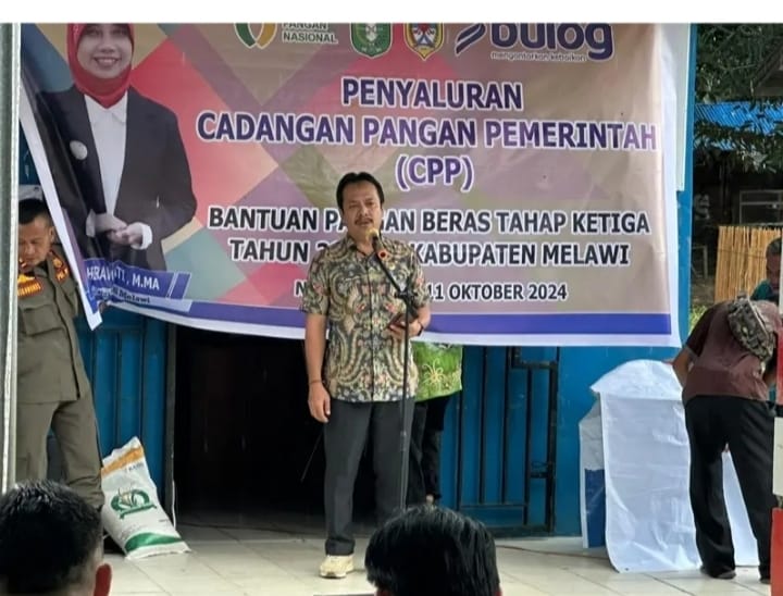 Kadis Ketahanan Pangan dan Pertanian Kabupaten Melawi, M. Syaiful Khair, S.Sos., M.Si., Kepala Dinas Ketahanan Pangan dan Pertanian Kabupaten Melawi, melaporkan jumlah bantuan yang telah disalurkan kepada Keluarga Penerima Manfaat (KPM) dalam tiga tahap program Cadangan Pangan Pemerintah (CPP) tahun 2024. Laporan ini disampaikan saat menyalurkan bantuan pangan beras CPP tahap ketiga di Desa Tanjung Lay, Kecamatan Nanga Pinoh, pada Jumat (11/10/2024). Acara tersebut diresmikan oleh Penjabat Sementara (Pjs) Bupati Melawi, Ir. Herti Herawati, MMA, yang turut didampingi oleh Sekretaris Daerah Kabupaten Melawi, Drs. Paulus. Kadis Kepangtan Kabupaten Melawi, M. Syaiful Khair, S.Sos., M.Si., Camat Nanga Pinoh, Hendra Permana,S.IP.