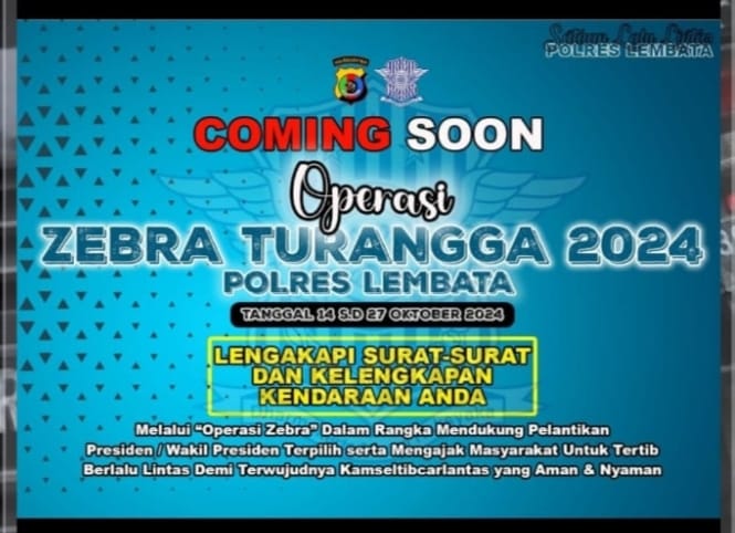 Lembata – Jurnal Polri.Com – Satlantas Polres Lembata akan menggelar operasi kepolisan dengan sandi Zebra Turangga 2024 selama 14 hari.
