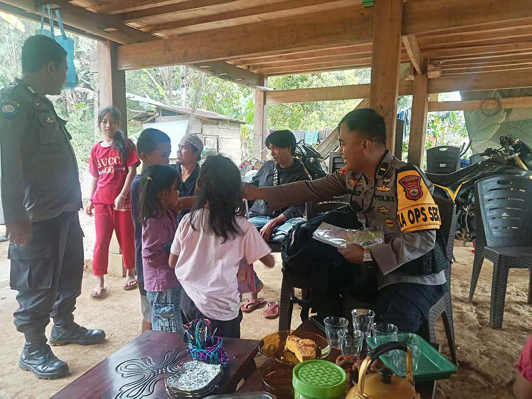 Rabu (25/09/2024), IPDA Jufri membawa sembako untuk warga yang membutuhkan dan tak lupa memberikan susu kotak, permen, serta snack kepada anak-anak yang ceria menyambutnya.