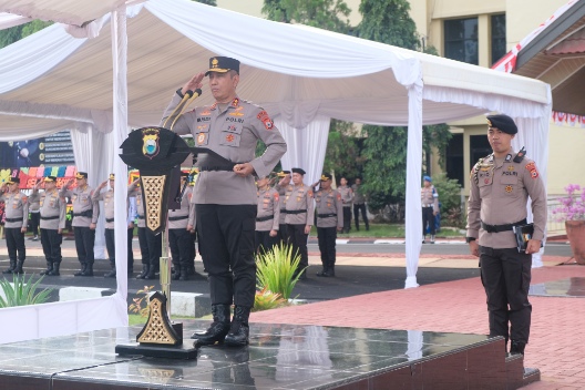 Menutup rangkaian upacara, Irjen Pol Drs. Rusdi Hartono menyampaikan ucapan selamat kepada seluruh personel yang berhasil meraih kenaikan pangkat.