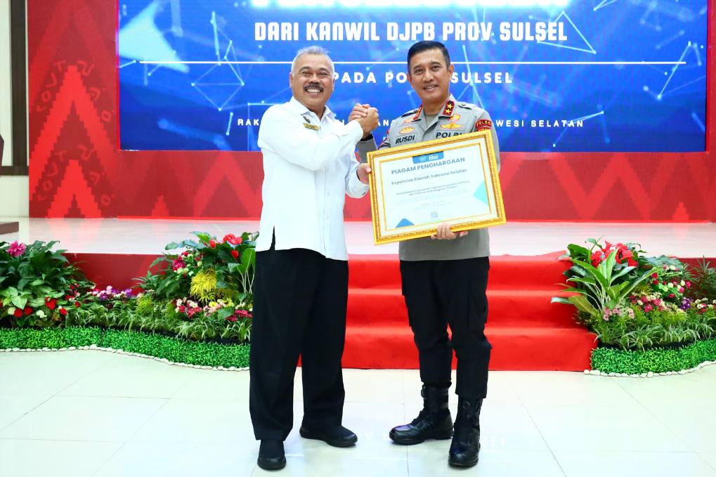 Salah satu penghargaan prestisius diterima langsung oleh Irjen Pol. Drs. Rusdi dari Kepala Kanwil Ditjen Perbendaharaan Provinsi Sulsel.