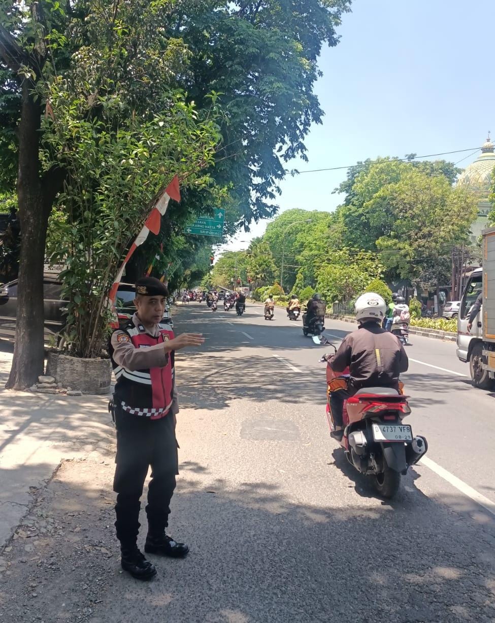 Jajaran  Samapta Polsek Regol Lakukan Giat Pengaturan Arus Lalulintas Siang  hari.