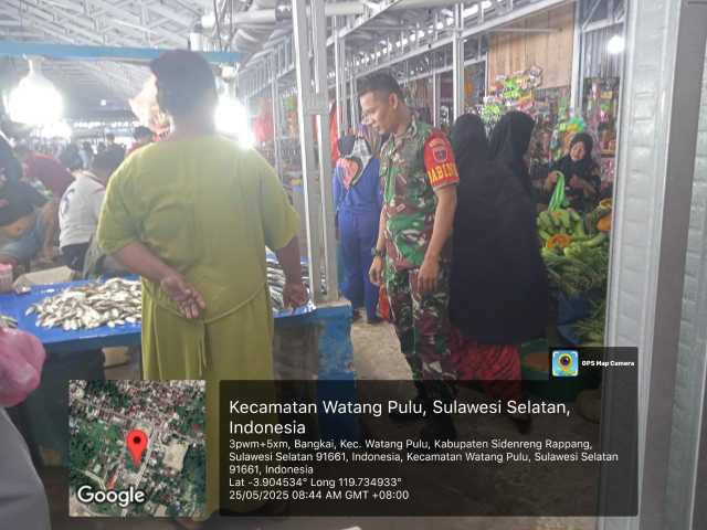 Dengan langkah sigap dan penuh kepedulian, Babinsa Koramil 04/Watang Pulu, Serda Irfan menyusuri setiap lorong pasar. Dari los sayur hingga lapak beras, ia tak segan berdialog langsung dengan pedagang maupun pembeli.