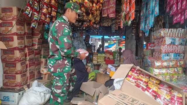 Serda Eman Rachman, Babinsa Koramil 1420-03/Maritengngae, turun langsung ke lapangan untuk memastikan pasokan bahan pokok tetap aman menjelang Hari Raya Idulfitri, Rabu (26/3/2025).