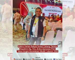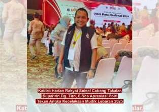JURNALPOLRI.MY.ID, Takalar – Ucapan terima kasih dan apresiasi datang dari berbagai pihak atas keberhasilan aparat kepolisian dalam menjaga kelancaran arus mudik Lebaran 2025. Salah satunya datang dari Supahrin Dg. Tiro, S.Sos, Kepala Biro Harian Rakyat Sulsel Cabang Takalar.