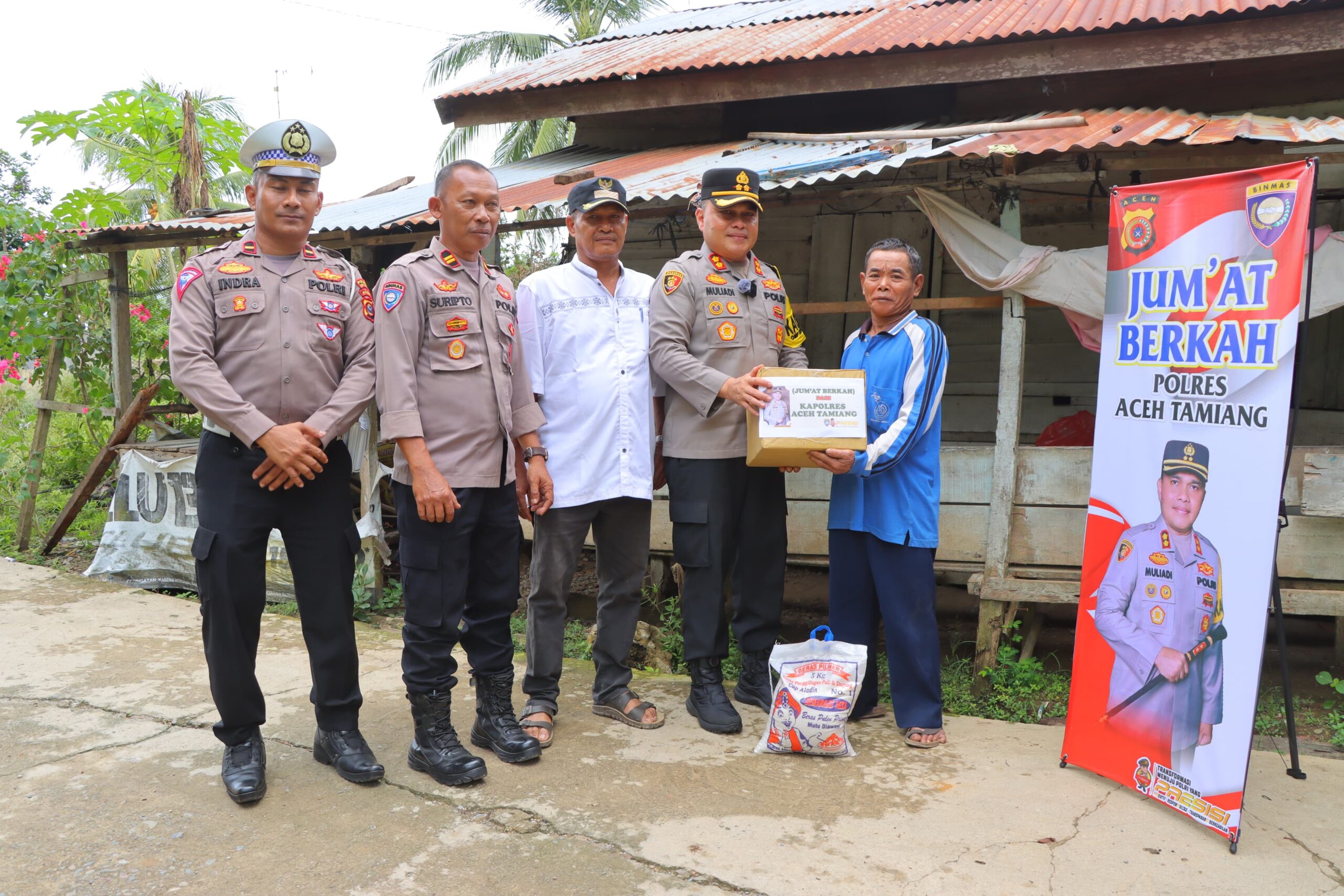 Kapolres Aceh Tamiang AKBP Muliadi, S.H, M.H mengatakan “kegiatan Jum’at Berkah ini kita laksanakan sebagai wujud kepedulian Polri khususnya Polres Aceh Tamiang kepada masyarakat serta untuk membantu warga kita yang sangat membutuhkan uluran tangan dari kita”