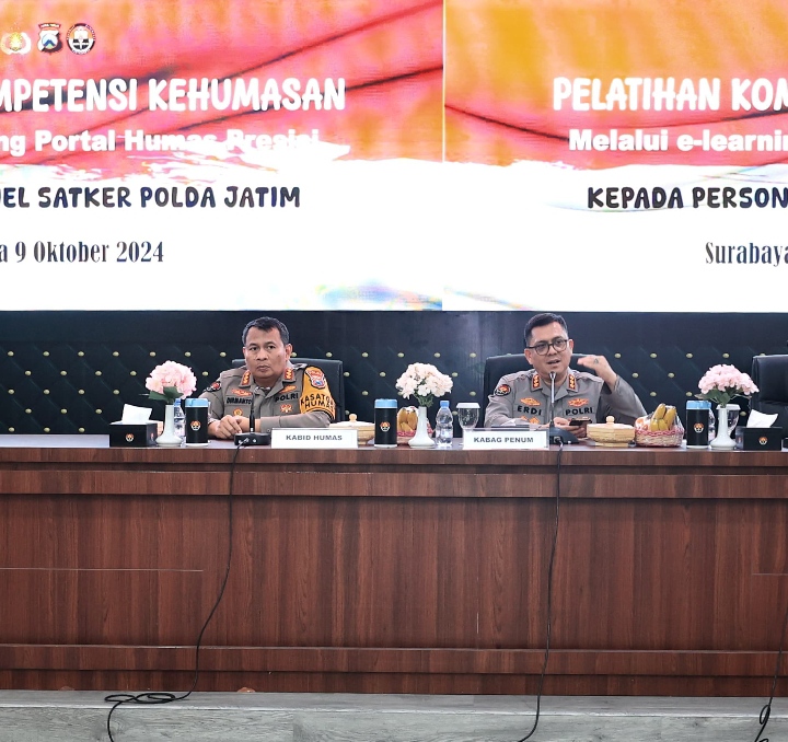 Dikesempatan yang sama, Kabidhumas Polda Jatim Kombes Pol Dirmanto menambahkan bahwa kegiatan pelatihan Kehumasan dan uji kompetensi melalui e-Learning Portal Humas Presisi ini adalah untuk meningkatkan kemampuan pengetahuan umum kehumasan personel Polda Jatim.