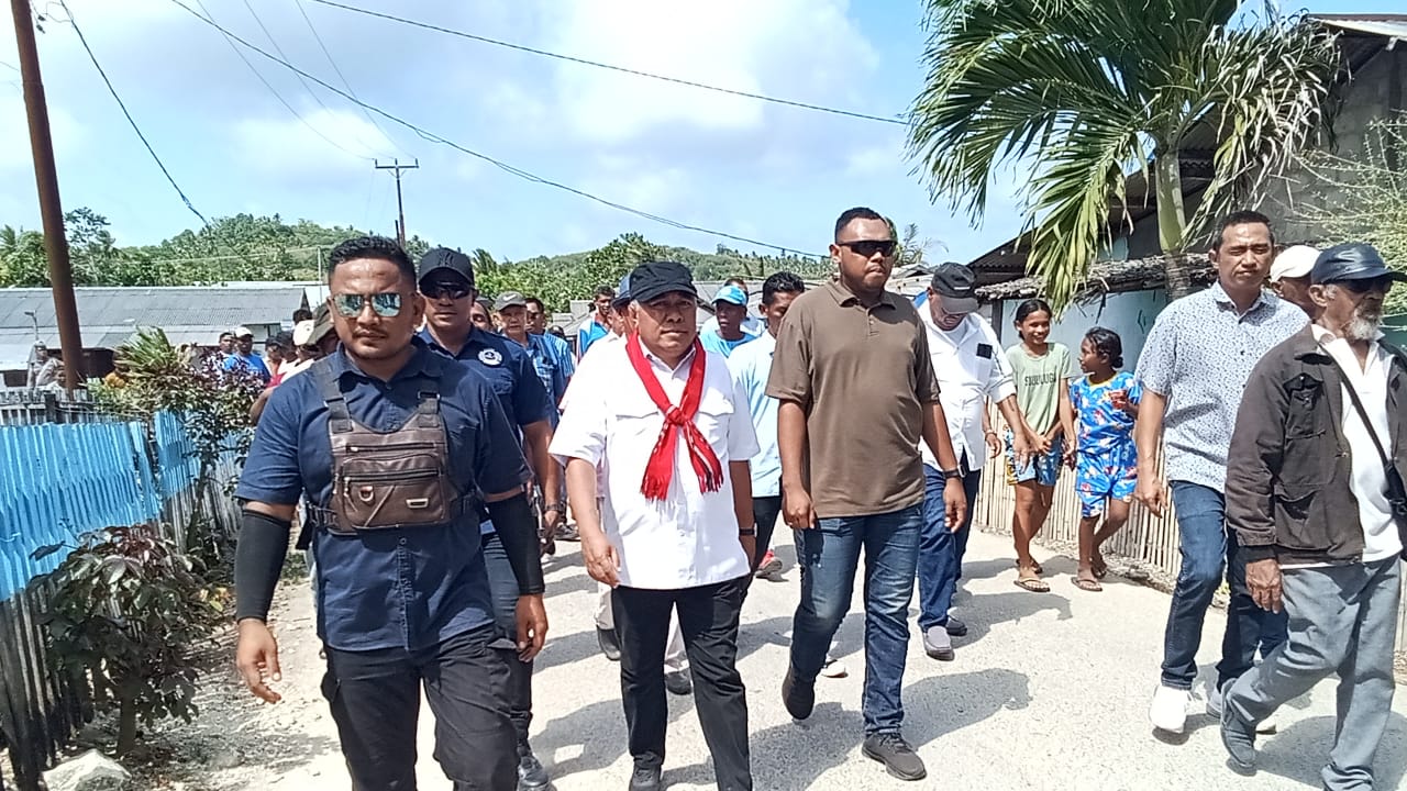 Jurnalpolri.my.id. Saumlaki,30/09/2024. Paslon Projo urut 5 bersama timnya bertatap muka langsung dengan masyarakat Desa Ilngei Kecamatan Tanimbar Selatan, Kabupaten Kepulauan Tanimbar, membuat partisipasi masyarakat cukup tinggi dalam mendengarkan orasi politik tim dan calon bupati.