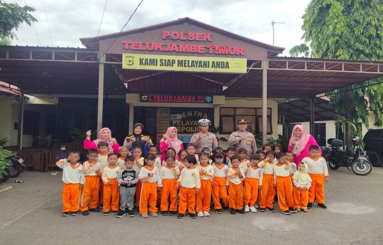Kanit Lantas Polsek Telukjambe Timur Sambut Kedatangan Murid Paud Teratai IX