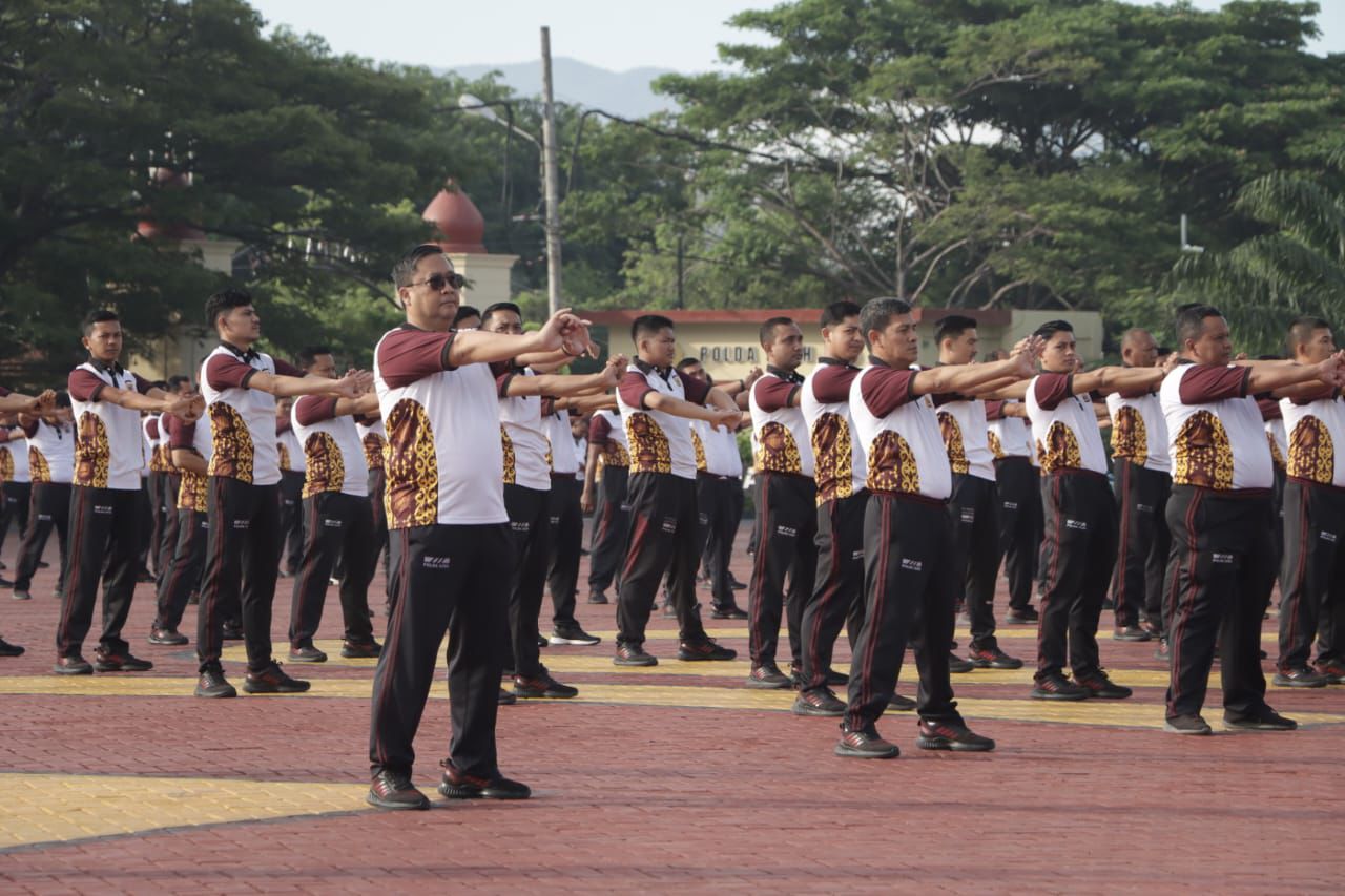 JURNAL POLRI.COM-BANDA ACEH-ACEH-Kapolda Aceh Irjen Pol. Achmad Kartiko, S. I. K., M. H, dan personel Polda Aceh melaksanakan olahraga bersama, yakni senam di Lapangan Mapolda Aceh, Jum’at, 1 November 2024.