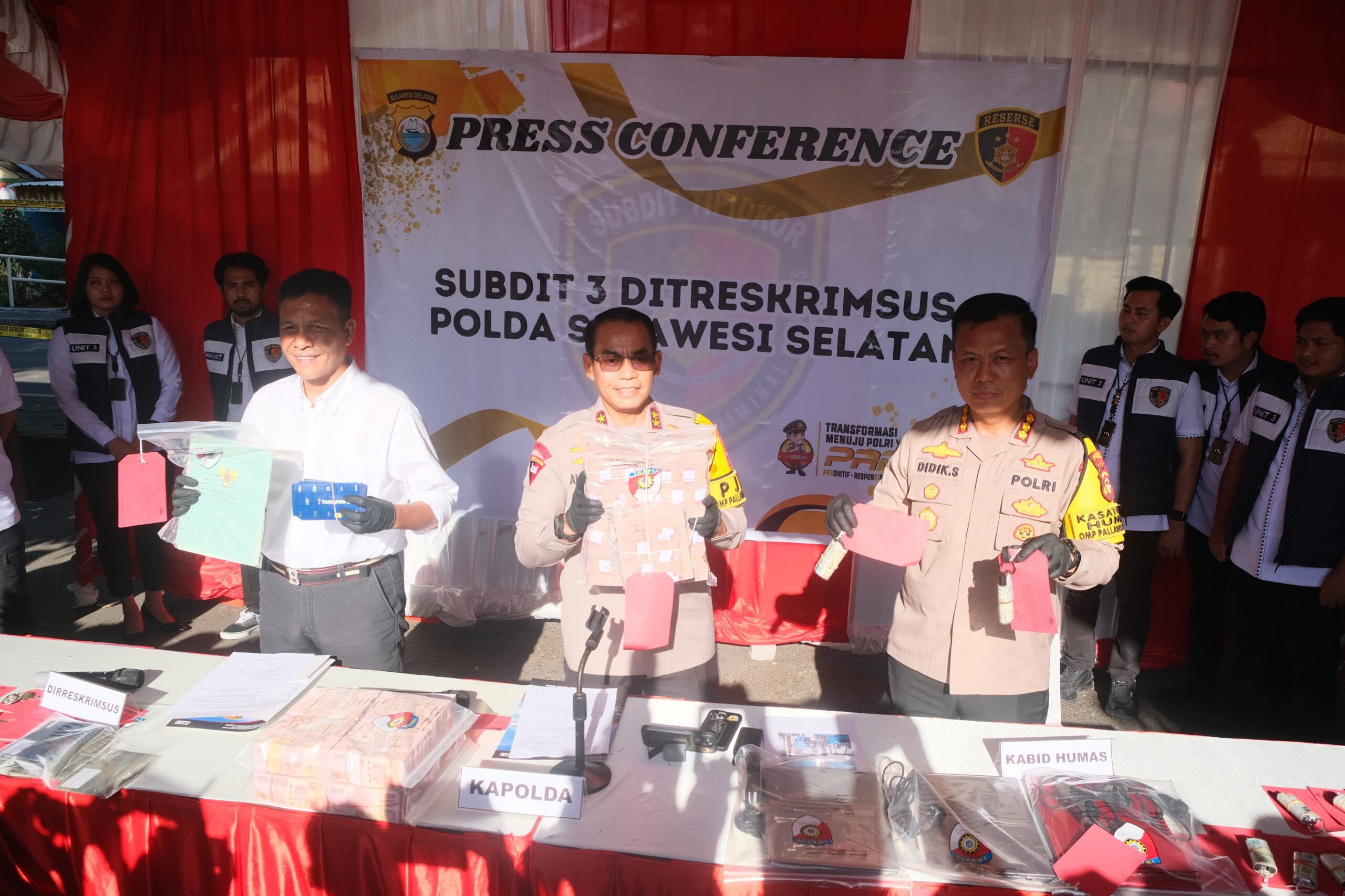 JURNALPOLRI.MY.ID, Makassar – Kapolda Sulsel, Irjen Pol. Andi Rian R. Djayadi, S.I.K., M.H., tidak main-main dalam menangani kasus korupsi yang merugikan negara miliaran rupiah. Bersama Kabid Humas Polda Sulsel Kombes Pol Didik Supranoto, S.I.K., M.H., dan Dirreskrimsus Polda Sulsel Kombes Pol Helmi Kwarta Kusuma, S.I.K., M.H., Kapolda menggelar press release pengungkapan kasus tindak pidana korupsi pemberian fasilitas kredit di Bank Mandiri SME (Small Medium Enterprise) Makassar Kartini kepada Koperasi PT. Eastern Pearl Flour Mills (EPFM) pada 2018 hingga 2019. Pengungkapan ini menegaskan tekad Polda Sulsel dalam memerangi kejahatan korupsi.