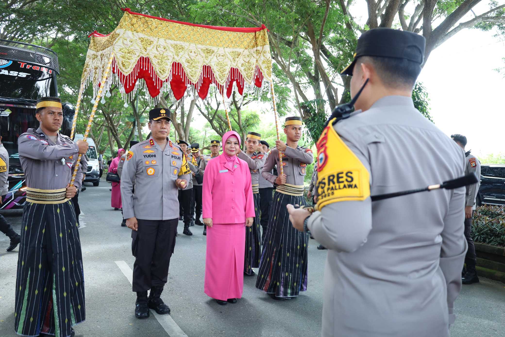 Kedatangan Kapolda Sulsel disambut dengan upacara adat berupa pengalungan salempang sarung oleh Kapolres Luwu AKBP Arisandi, S.H., S.I.K., M.Si. serta pemberian buket bunga kepada Ny. Yunita Yudhiawan oleh Ketua Bhayangkari Cabang Luwu Ny. Rise Arisandi . Acara dilanjutkan dengan Jajar Kehormatan yang dilakukan oleh personel Polres Luwu.