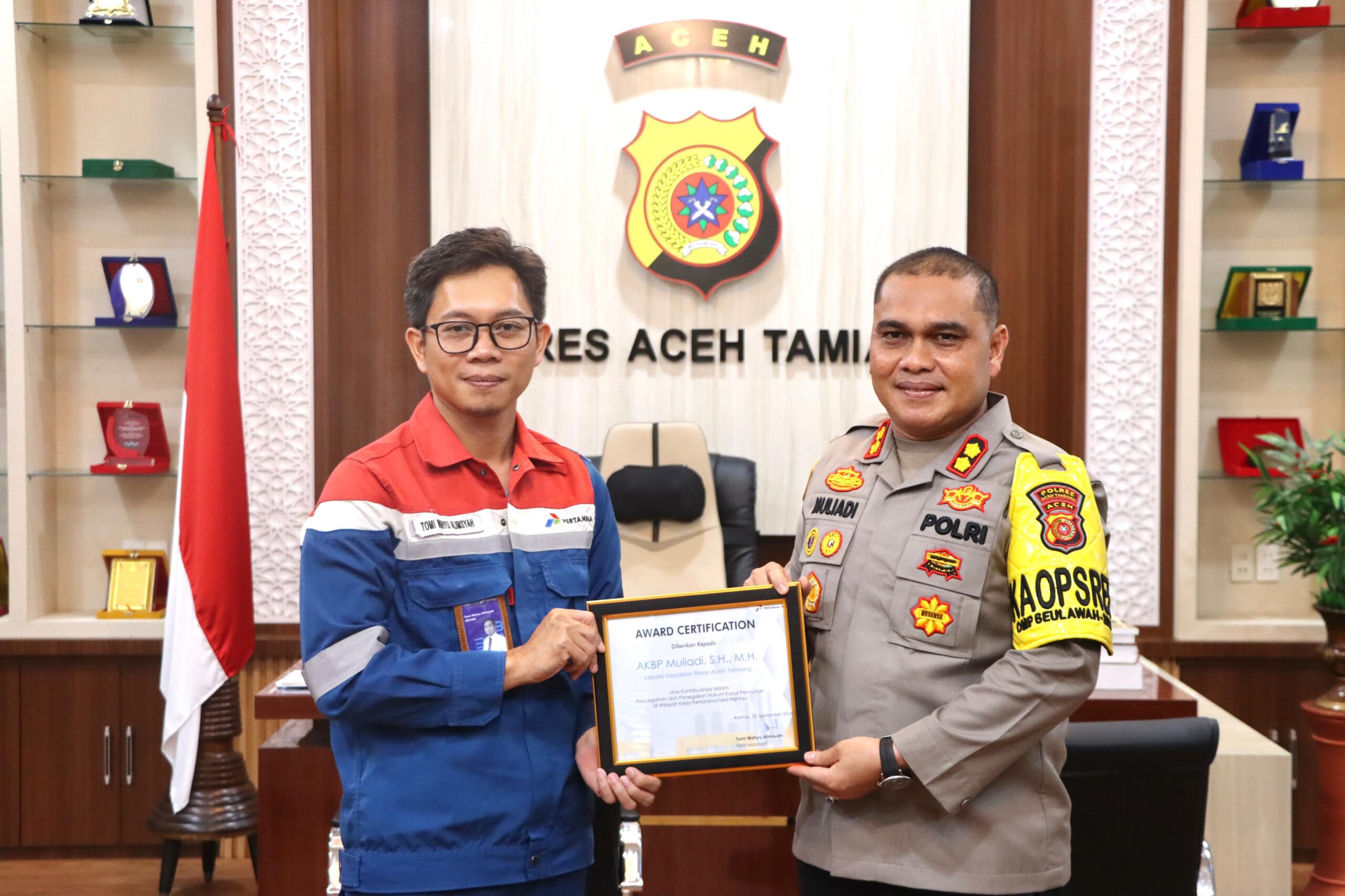 Kedatangan dari PT Pertamina EP Asset 1 Rantau Field diterima secara langsung oleh Kapolres Aceh Tamiang AKBP Muliadi, S.H, M.H didampingi Kasat Intelkam IPTU M. Putra Yoni, S.H