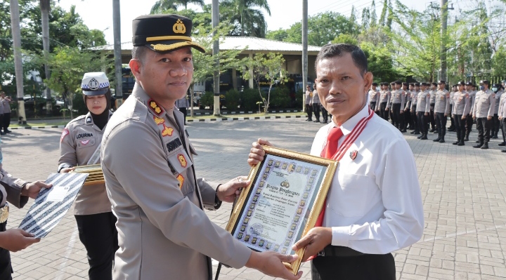 Adapun piagam penghargaan diberikan kepada AKP Mujianto, S.H., Kanit Reskrim Polsek Nganjuk Kota dan BRIPKA Sugeng Riyadi, S.H., BA Unit Reskrim Polsek Nganjuk Kota , atas dedikasi, loyalitas, dan disiplin serta asistensi kepada anggota dalam ungkap kasus tindak pidana penganiayaan hingga meninggal dunia.