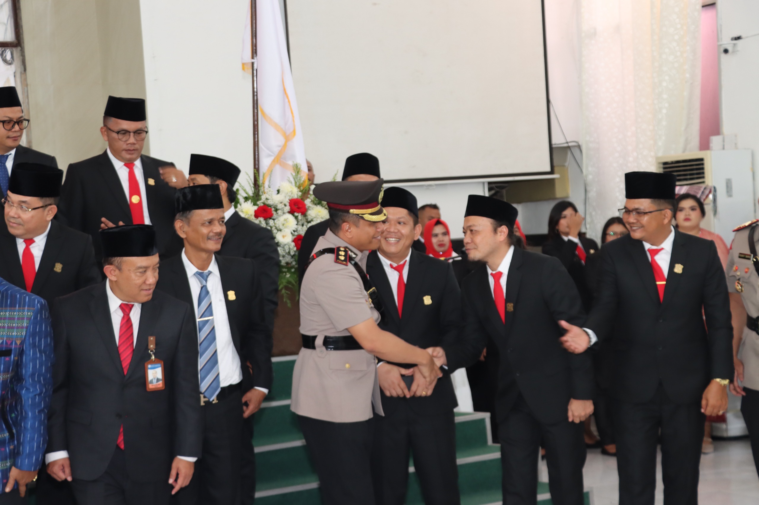 JP. PEMATANG SIANTAR-SUMATERA UTARA. Kapolres Pematangsiantar AKBP Yogen Heroes Baruno SH, SIK mengikuti Rapat Paripurna dalam rangka Pengambilan Sumpah/Janji Anggota DPRD Pematangsiantar Masa Jabatan Tahun 2024-2029 bertempat di Gedung Harungguan DPRD Kota Pematangsiantar, Senin 2 September 2024 pukul : 10.00 Wib.
