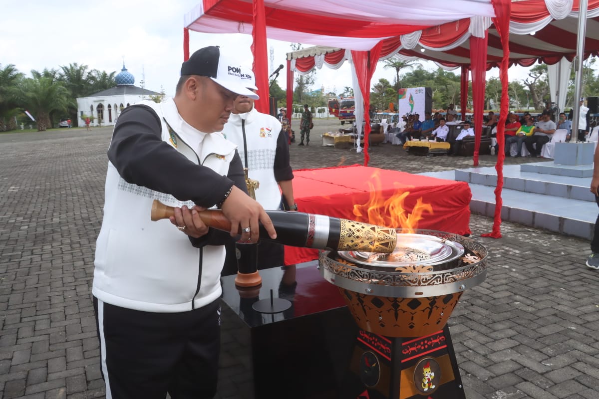 Kapolres Pimpin Upacara Kirab Api PON XXI Aceh-Sumut 2024, Disambut Meriah di Kabupaten Simalungun