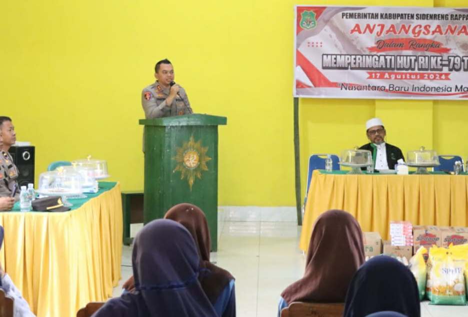 JURNALPOLRI.MY.ID, Sidrap – Dalam rangka menyemarakkan Hari Ulang Tahun (HUT) Kemerdekaan Republik Indonesia ke-79, Pemerintah Daerah Kabupaten Sidrap berkolaborasi dengan Polres Sidrap menggelar kegiatan bakti sosial anjangsana di Panti Asuhan Sejati Muhammadiyah Sidrap, Jumat (16/08/24). Acara ini menjadi momen penting yang menebar kebahagiaan sekaligus menyuarakan pesan moral kepada generasi muda Sidrap.