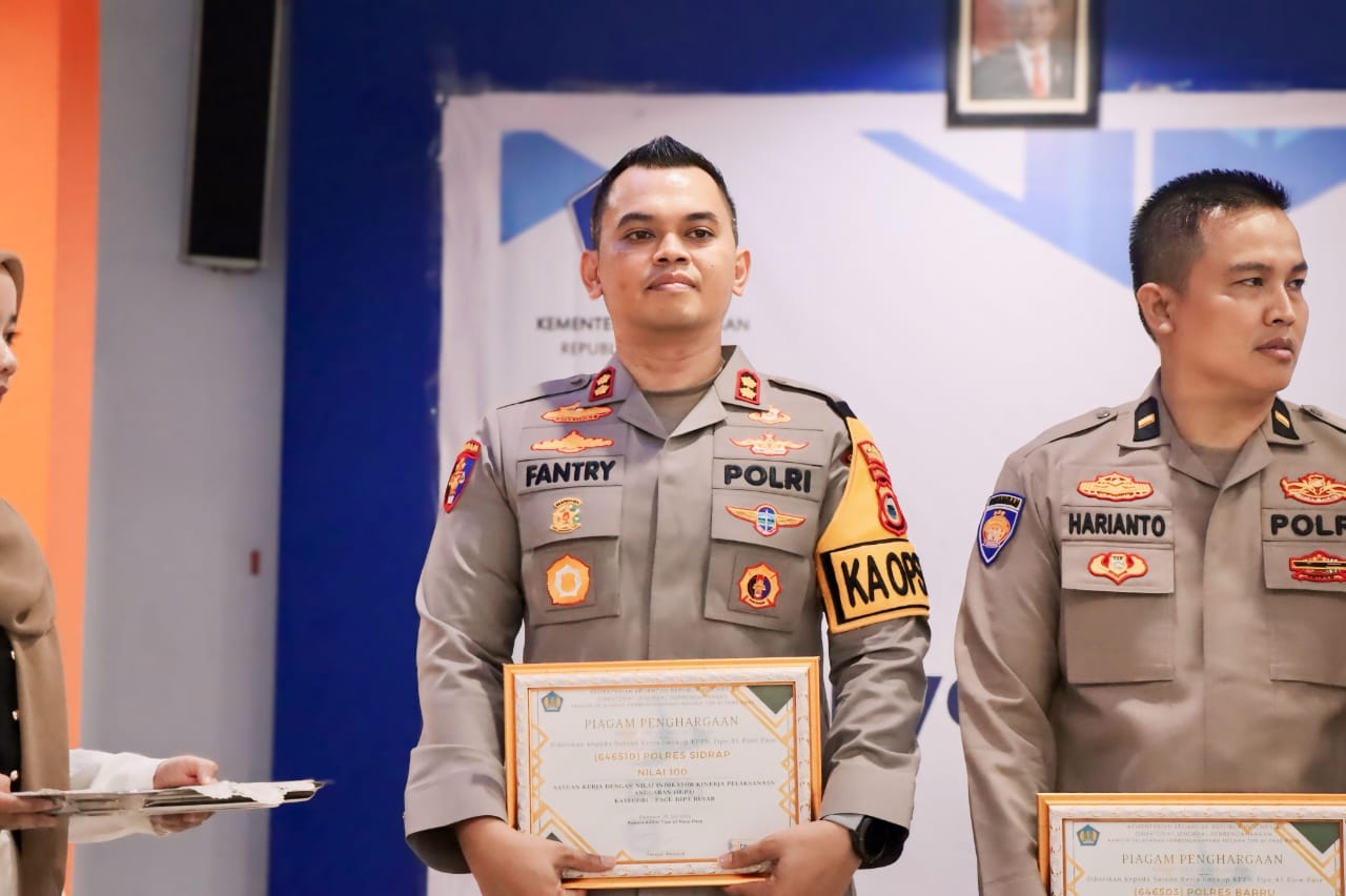 JURNALPOLRI.MY.ID, Parepare – Kapolres Sidrap, AKBP Dr. Fantry Taherong, SH., S.I.K., M.H., mendapatkan penghargaan bergengsi dari Kantor Pelayanan Perbendaharaan Negara (KPPN) Parepare atas prestasinya dalam Indikator Kinerja Pelaksanaan Anggaran (IKPA). Penghargaan ini diberikan sebagai pengakuan atas nilai sempurna 100 yang diraih oleh Polres Sidrap dalam penilaian IKPA, menunjukkan kinerja yang efektif dan efisien dalam pengelolaan anggaran negara.