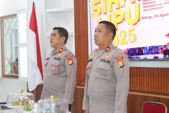Sidrap, JURNALPOLRI.MY.ID – Jajaran Polres Sidrap resmi menggelar Lat Pra Operasi (Lat Pra Ops) Sikat Lipu 2025 di Ruang Tatya Dharaka Rupatama Polres Sidrap, Selasa (26/08/2025) pagi. Kegiatan ini menjadi momentum penting bagi seluruh personel untuk menyatukan strategi dalam menjaga keamanan dan ketertiban masyarakat.