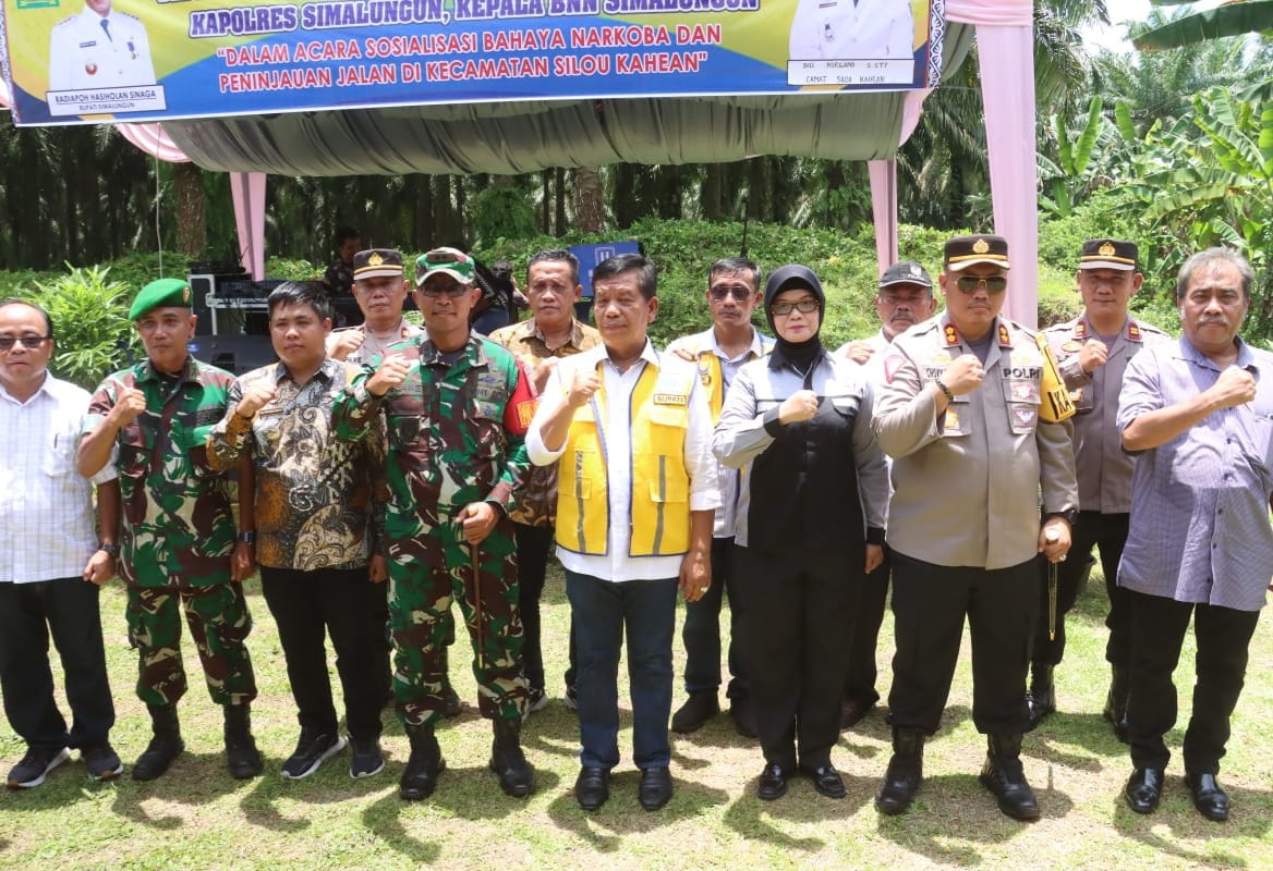 JURNALPOLRI.COM- SIMALUNGUN- SUMUT- Silou Kahean, Simalungun – Pada hari Jumat, 6 September 2024, Kapolres Simalungun AKBP Choky Sentosa Meliala, S.I.K., S.H., M.H., memimpin kegiatan sosialisasi bahaya narkoba dan peninjauan kondisi jalan di Kecamatan Silou Kahean, Kabupaten Simalungun. Acara ini berlangsung di halaman Kantor Pangulu Silou Paribuan, Kecamatan Silou Kahean, Jalan Besar Negeri Dolok, dan dihadiri oleh sejumlah tokoh penting, termasuk Bupati Simalungun Radiapoh Hasiholan Sinaga, SH., Dandim 0207/Simalungun Letkol Inf. Slamet Faojan, M.Han., serta Kepala BNN Simalungun, AKBP Suhana Sinaga, S.Kom, M.Si.