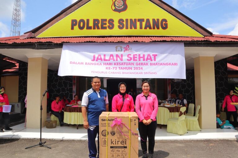 Rangkaian pelaksanaan untuk memperingati Hari Kesatuan Gerak Bhayangkari (HKGB) yang ke 72, sebagai kegiatan pembuka Bhayangkari Polres Sintang menggelar jalan sehat, Jumat (27/9) Pagi.