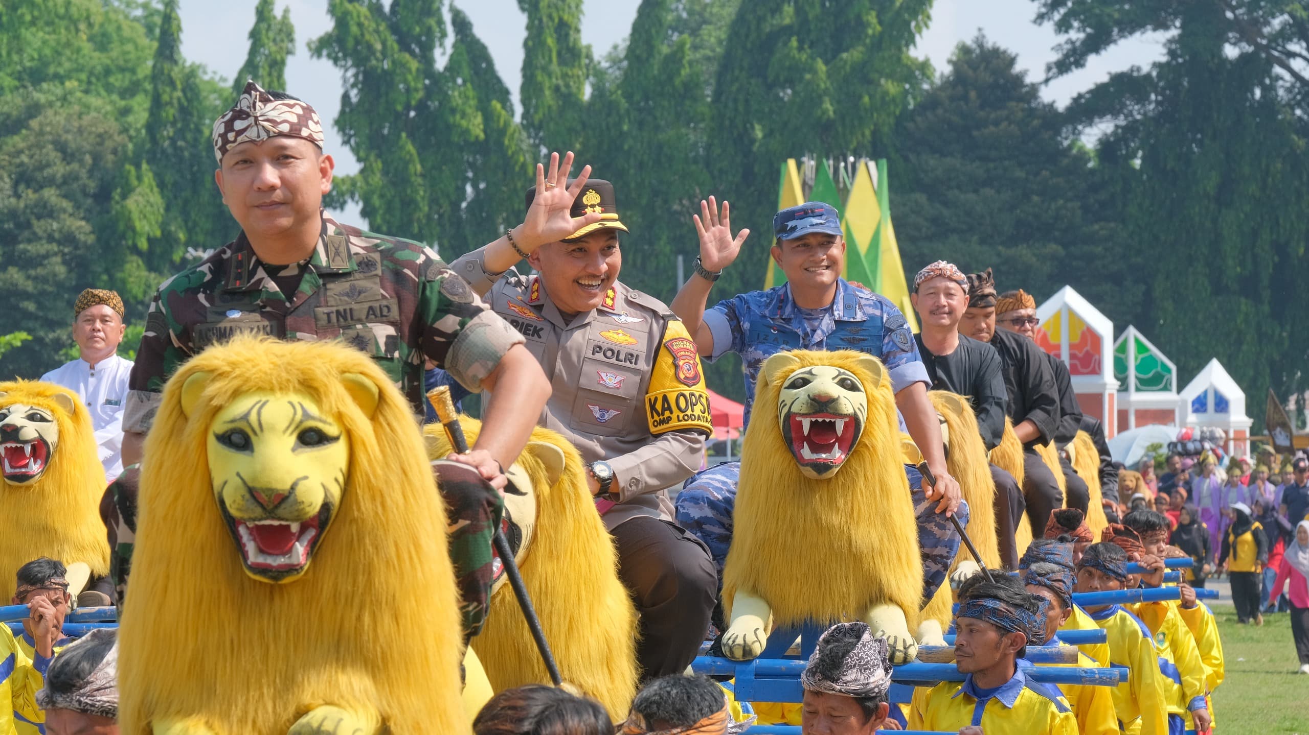 JP – SUBANG – Dalam Rangka Memperingati Hari Sumpah Pemuda Ke-96 , Kapolres Subang AKBP Ariek Indra Sentanu, S.H., S.I.K., M.H. didampingi dengan Ibu Ketua Bhayangkari Cabang Subang Ny. Lione Ariek Indra, S.Kom., MMSI. hadiri kegiatan Sisingaan dan Pawai Alegoris yang Bertempat di Alun -Alun Kabupaten Subang pada hari Sabtu, 26 Oktober 2024.