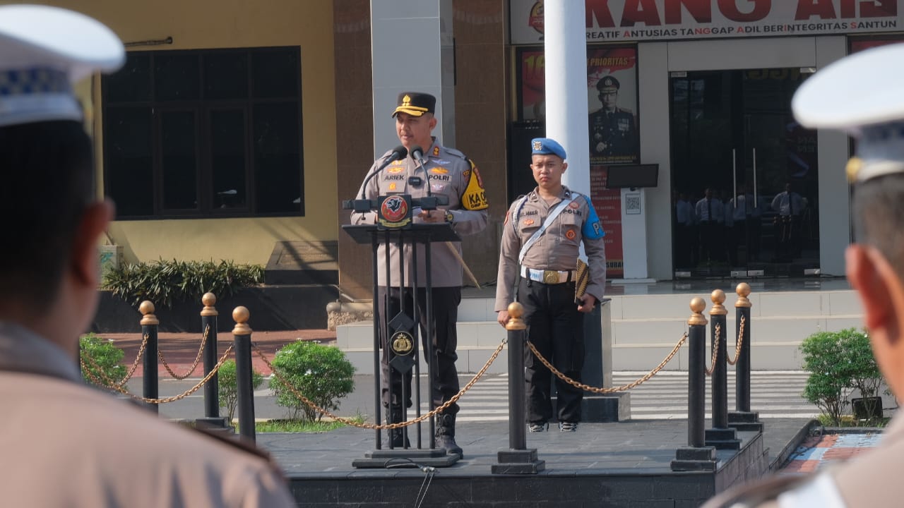 SUBANG – JP – Kapolres Subang AKBP Ariek Indra Sentanu S.H., S.I.K., M.H, memimpin Kegiatan Apel Pengamanan Antisipasi Dinamika Sitkamtibmas dan Kerawanan Pada Tahap Pengucapan Sumpah/Janji Presiden dan Wapres Terpilih 2024 di Wilayah Hukum Polres Subang di Lapangan Tatag Trawang Tungga Polres Subang pada Sabtu (19/10/24).
