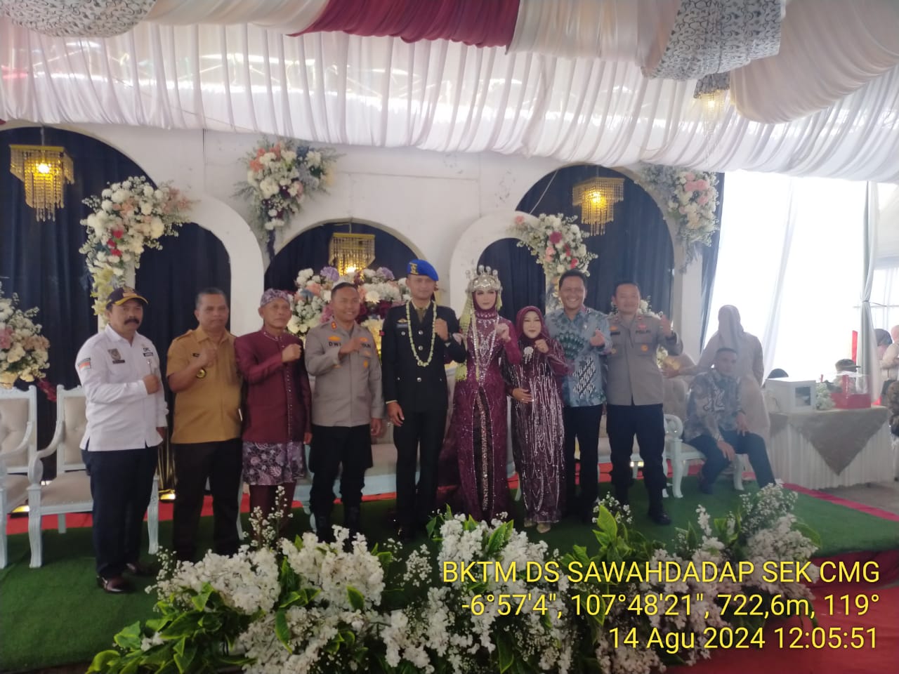 Kapolres Sumedang AKBP JOKO DWI HARSONO, S.I.K., M.Hum. Bersama Kapolsek Cimanggung KOMPOL KARYAMAN D., S.H., M.H. Hadiri Acara Resepsi Pernikahan Warga Desa Sawahdadap