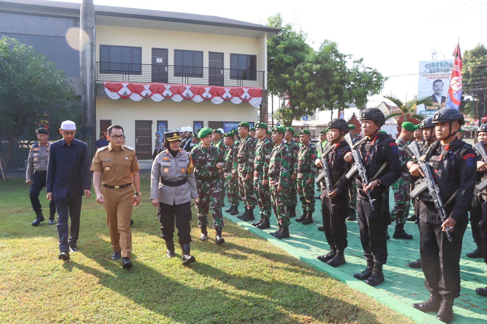 “Apel Gelar Pasukan Operasi Mantap Praja Lodaya 2024 ini menjadi sarana untuk menyatukan tekad dan komitmen dalam mengawal proses demokrasi di wilayah hukum Polda Jawa Barat, khususnya di Kabupaten Cirenon,” ujar Kapolresta Cirebon, Kombes Pol Sumarni, S.I.K, S.H, M.H.