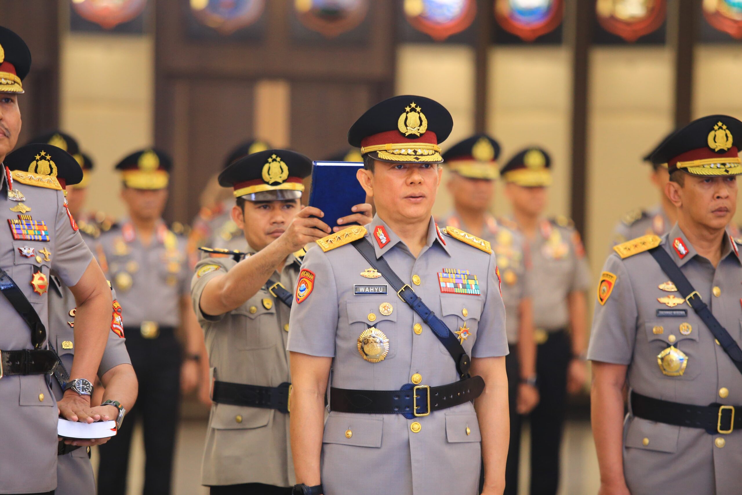 “Kapolri Jenderal Polisi Listyo Sigit Prabowo memimpin upacara pelantikan dan serah terima jabatan pejabat utama Mabes Polri Dan para Kapolda, serta upacara laporan kenaikan pangkat ke dan dalam golongan Pati Polri,” kata Kabag Penum Divisi Humas Polri Kombes Pol Erdi A Chaniago dalam keterangan tertulisnya, Sabtu (28/9/2024).