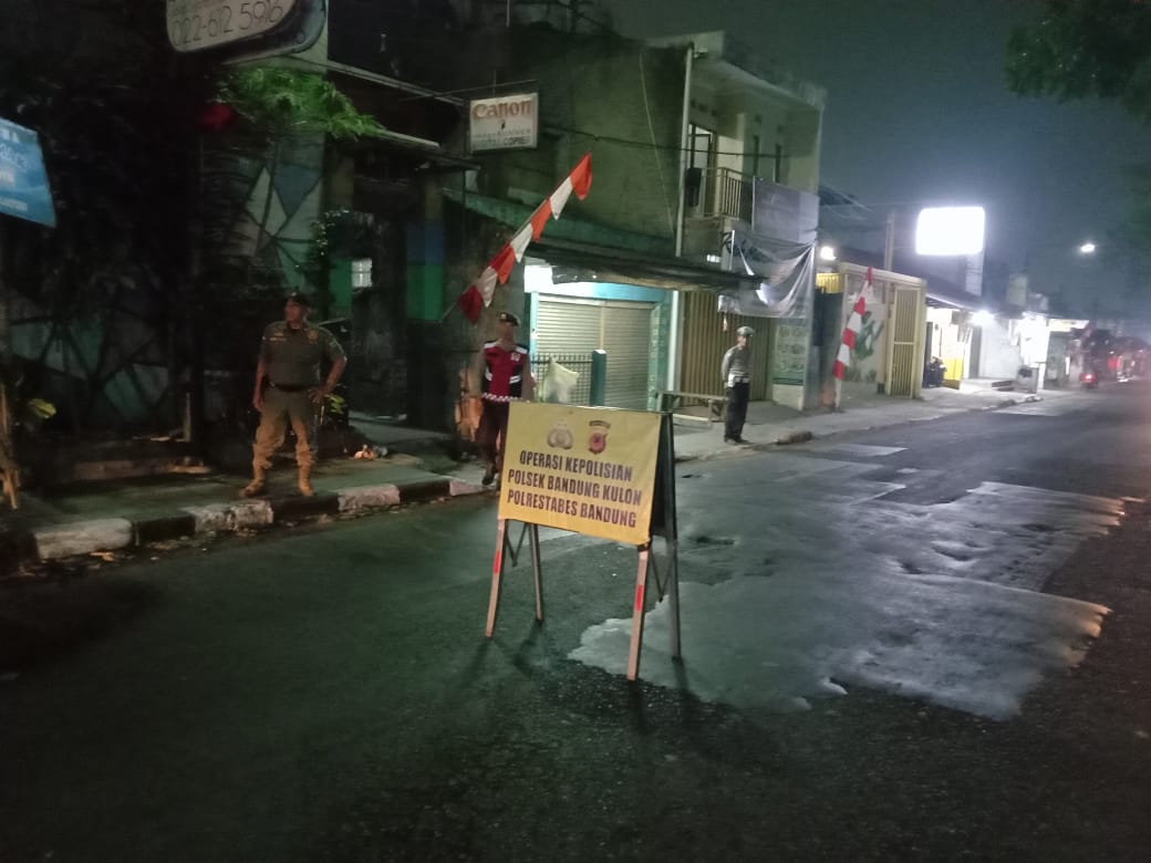 JP. Polrestabes Bandung Polda Jabar Jajaran Polsek Bandung Kulon,giat patroli skala kecil 3 pilar Kec.Bandung Kulon guna antisipasi rawan malam seperti gangguan kamtibmas C3 dan kriminalitas lainnya serta membubarkan pemuda pemudi yg masih pada nongkrong diarahkan untuk kembali ke rumah masing”giat dipimpin langsung oleh Kapolsek Bandung Kulon AKP Udin Taryana S.,Sos.,MH didampingi Waka Polsek dan Anggota Opsnal di Wilayah Hukum Polsek Bandung Kulon