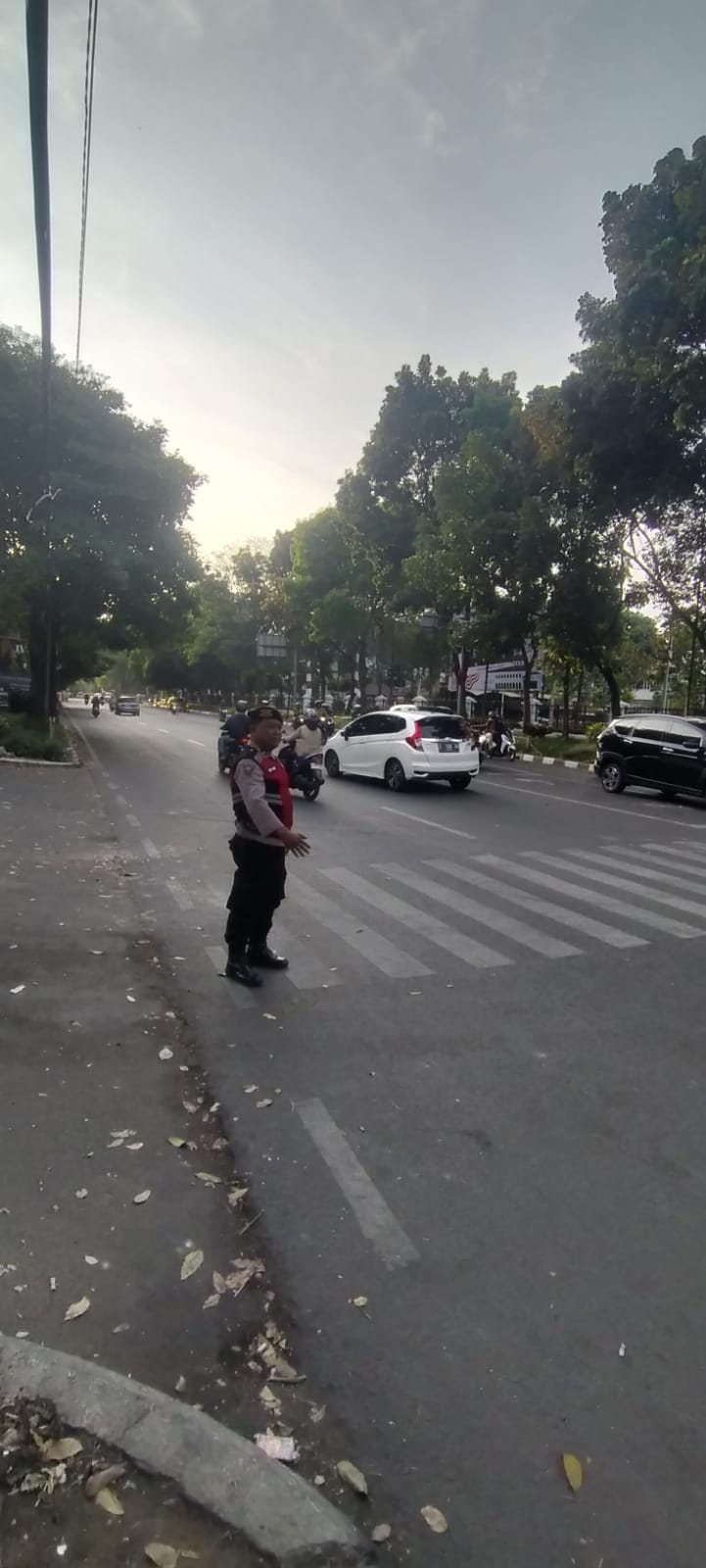 Kapolsek Bandung Wetan melaksanakan Penyebrangan pengguna jalan di wilayah Polsek Bandung Wetan