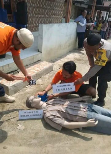 Rekonstruksi yang di lakukan di TKP diperankan Oleh Tersangka Ferdian Siregar dan pemeran Korban di perankan oleh BRIPKA Wahidin Sijabat