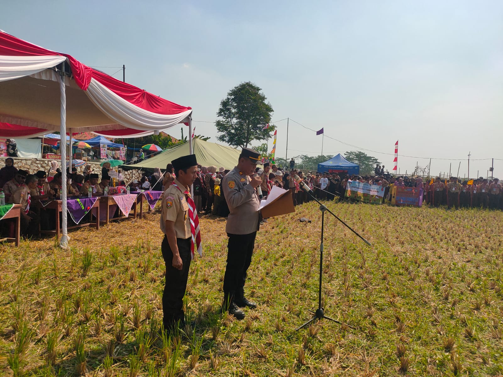 Pada pesannya, Kapolsek Tegalwaru, Iptu Ata, SH. Mengatakan agar bersama-sama sukseskan Perkemahan Jambore tingkat Ranting Tegalwaru yang ke 17 dengan aman dan lancar.