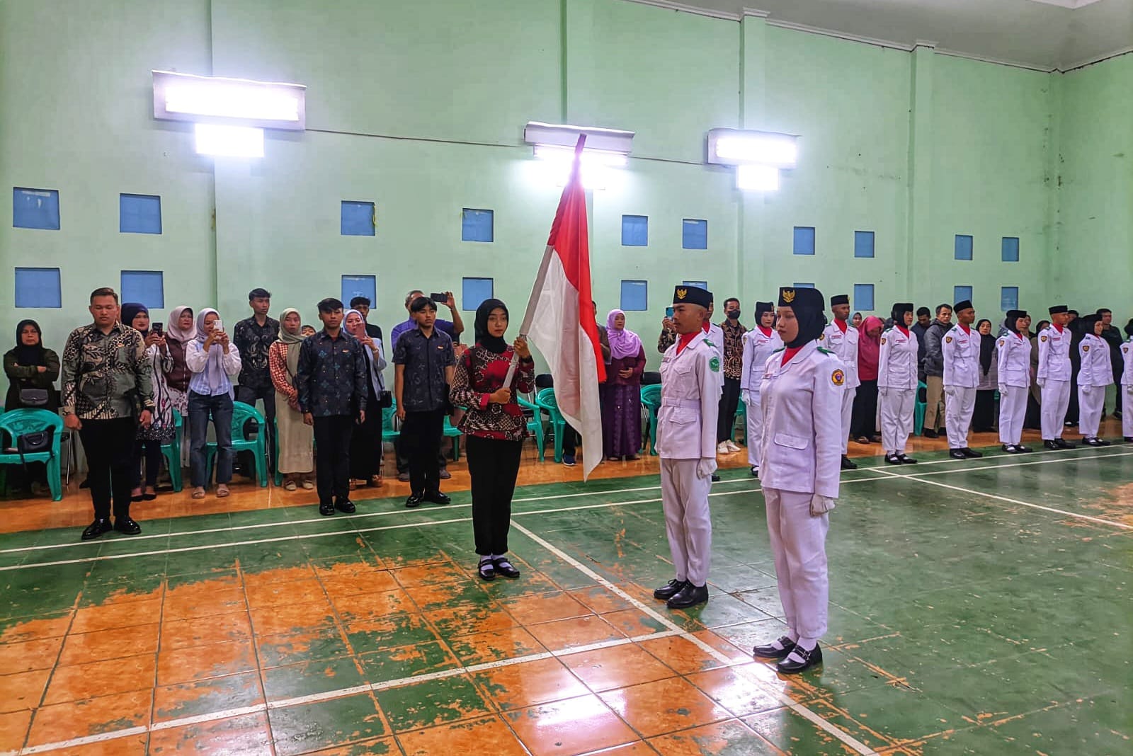 JURNALPOLRI.COM, Nagreg – Kapolsek Nagreg, Polresta Bandung, Kompol Sumartono, menghadiri upacara Pengukuhan Pasukan Pengibar Bendera (Paskibra) tingkat Kecamatan Nagreg di GOR Sahabat, Komplek Kantor Kecamatan Nagreg, Kabupaten Bandung, Rabu (14/08/2024) malam.