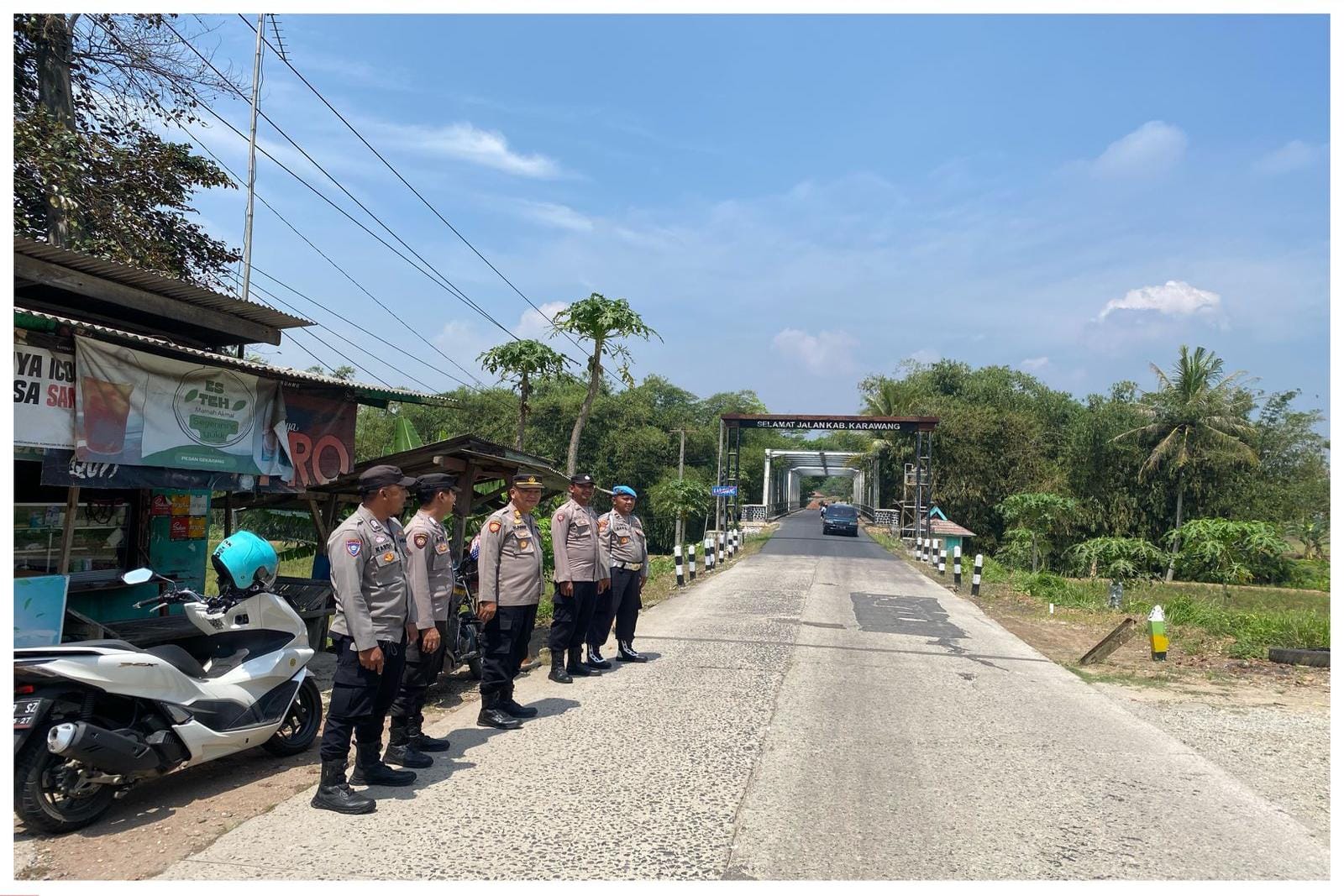 JP Polres Karawang – Dalam rangka persiapan pelantikan Presiden dan Wakil Presiden, Kapolsek Pangkalan AKP H. Asep Kosasih beserta jajaran melaksanakan pengamanan penyekatan di wilayah perbatasan di Jalan Loji Cariu Desa Mulangsari, Kecamatan Pangkalan, Karawang, Jawa Barat, Minggu (20/10/2024).