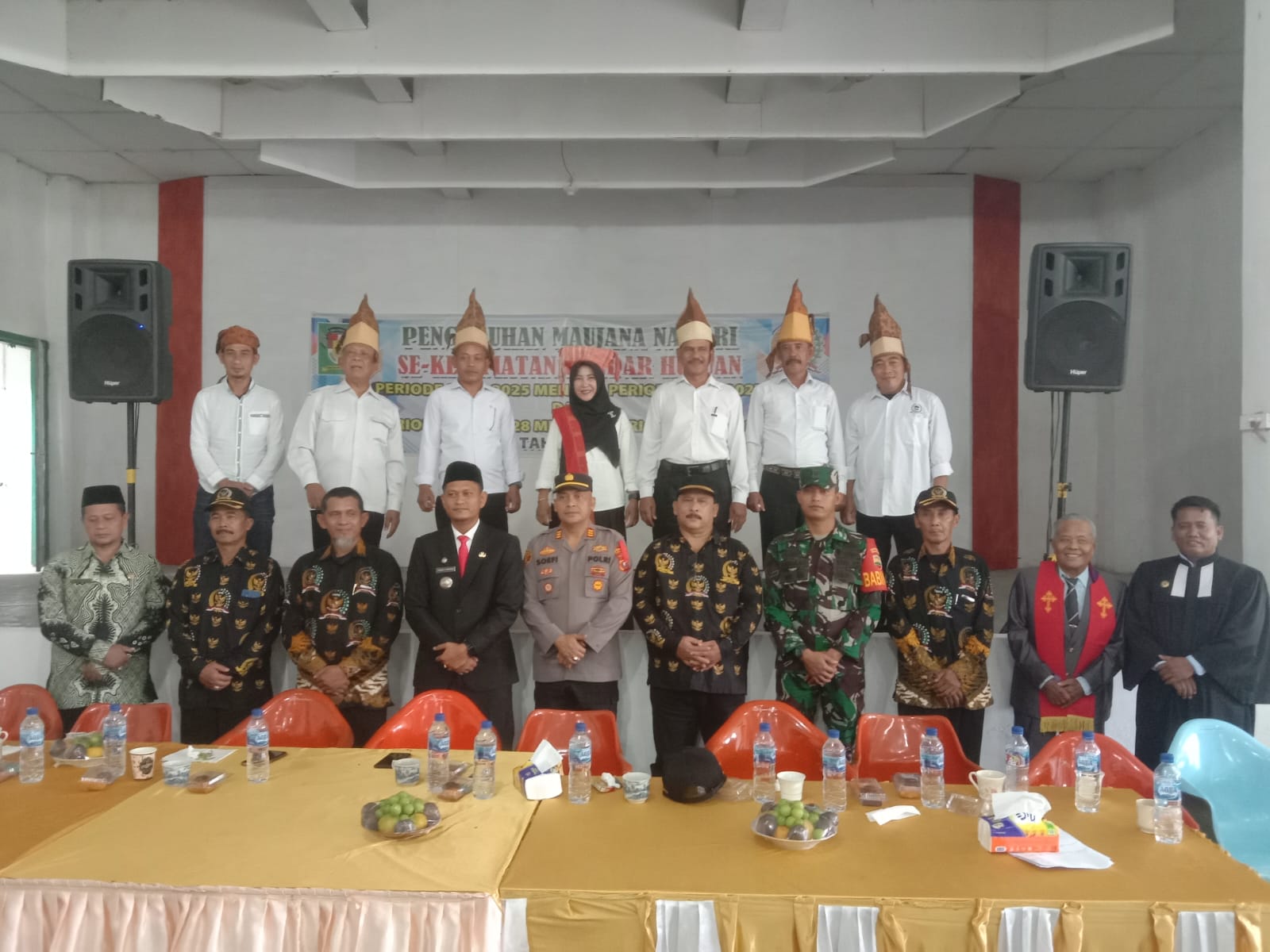 JURNALPOLRI.COM- SIMALUNGUN- SUMUT- Bandar Huluan, Sumatera Utara – Kapolsek Perdagangan, AKP Ibrahim Sopi, S.H., M.H., memberikan arahan dalam acara pengukuhan Maujana Nagori SE Kecamatan Bandar Huluan di Wisma Sisalana Laras, Nagori Laras, Kecamatan Bandar Huluan, Kabupaten Simalungun pada Rabu, 09 Oktober 2024 pukul 10.00 WIB. Kegiatan ini dilakukan dalam rangka penambahan masa jabatan Maujana Nagori SE Kecamatan Bandar Huluan periode 2019-2025 menjadi 2019-2027 dan periode 2022-2028 menjadi 2022-2030.