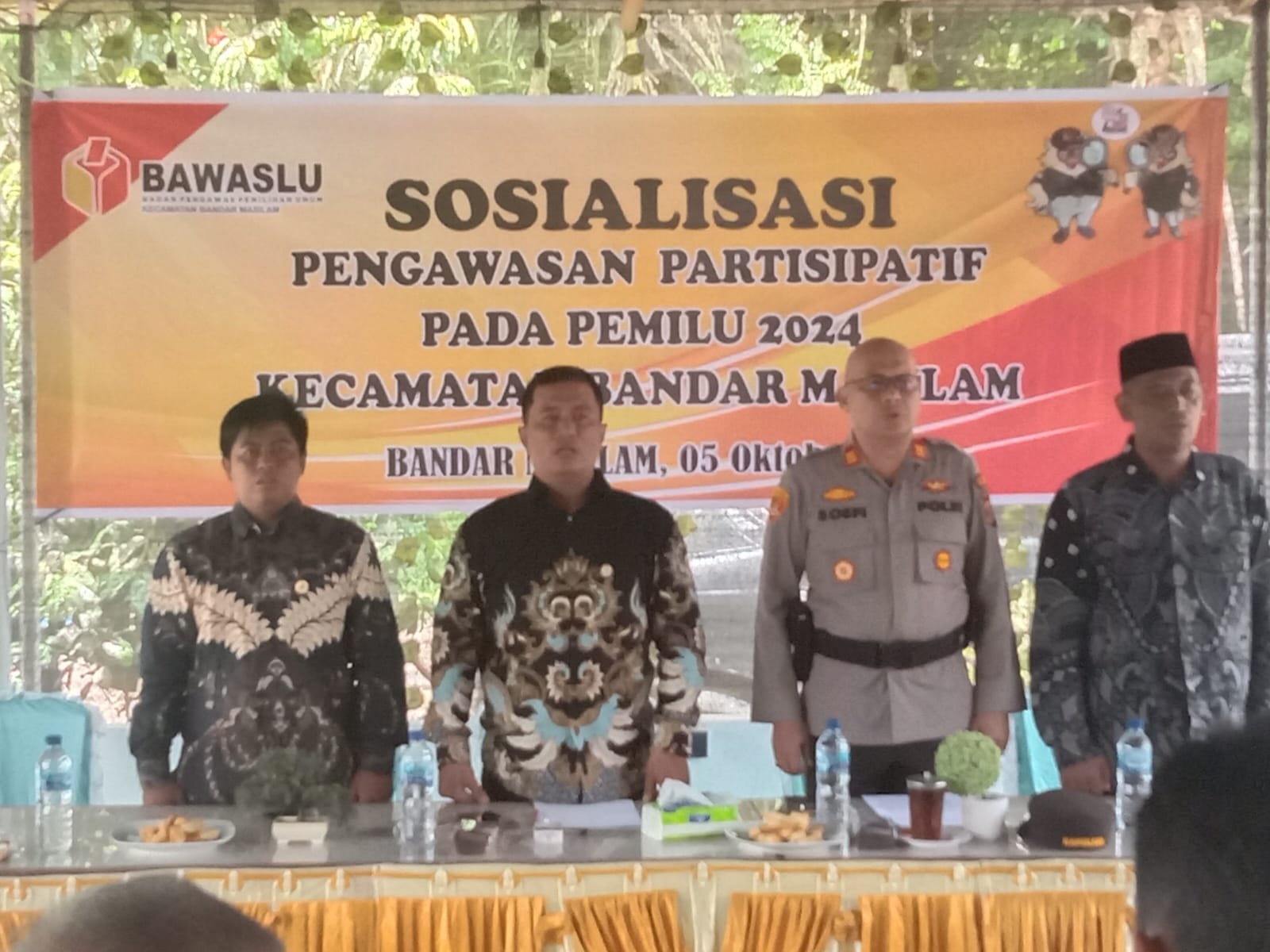 JURNALPOLRI.COM- SIMALUNGUN- SUMUT- Perdagangan, Sumatera Utara – Kapolsek Perdagangan, AKP. Ibrahim Sopi, SH, memberikan materi sosialisasi pengawasan partisipatif pada Pemilu tahun 2024 di Cafe Mak Ndut, Nagori Bandar Masilam, Kecamatan Bandar Masilam, Kabupaten Simalungun pada Sabtu, 05 Oktober 2024 pukul 14.00 WIB. Sosialisasi ini dihadiri oleh Komisioner Panwascam Bandar Masilam, M. Nasrin, Ka Sek Panwascam Bandar Masilam, Amat Amin S.Pd, serta perangkat Nagori dan Kaur Nagori dari seluruh Nagori di Kecamatan Bandar Masilam, dan PKD Kecamatan Bandar Masilam.