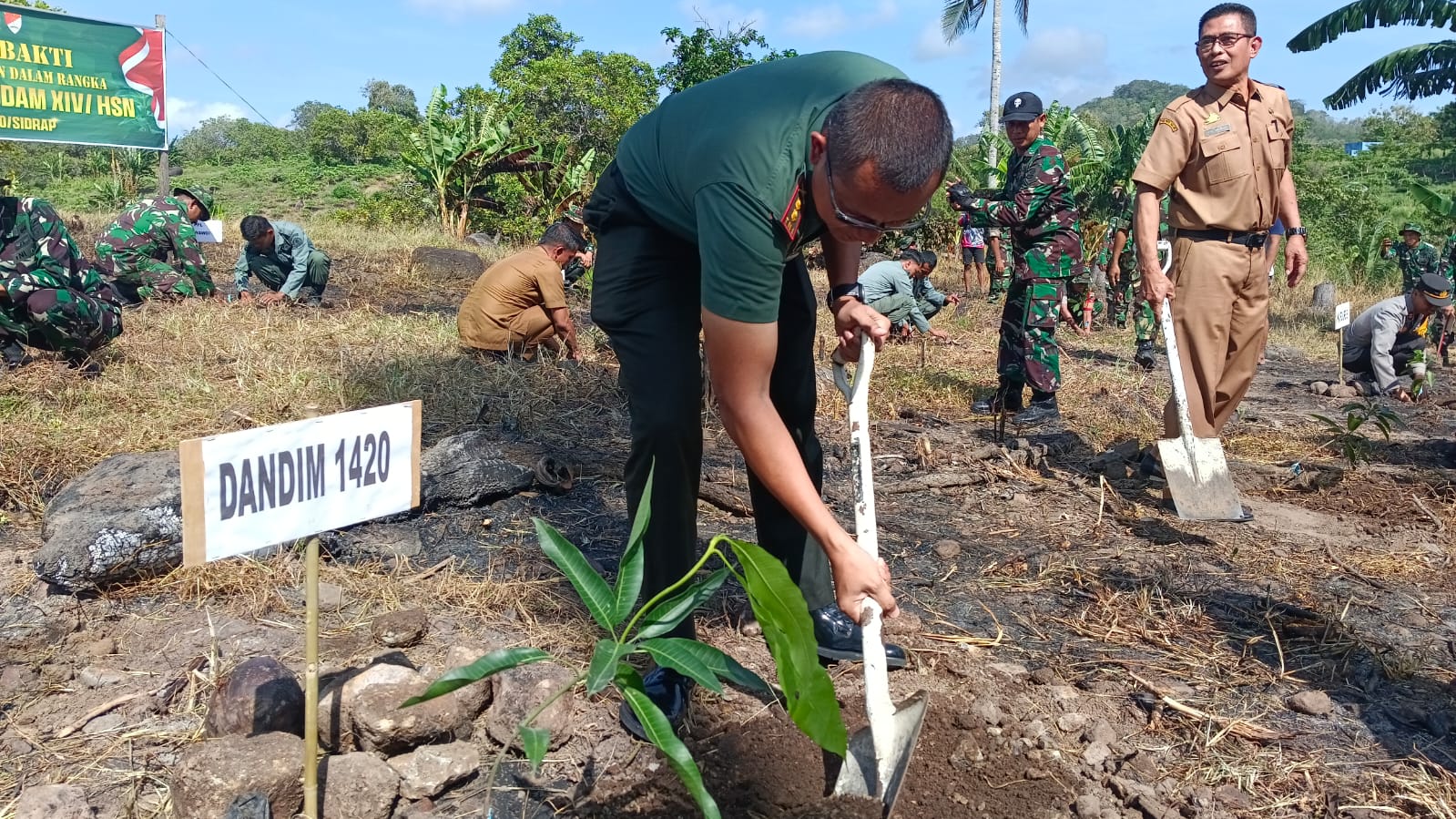 JURNALPOLRI.MY.ID, Sidrap – Dalam rangka memperingati HUT Ke-67 Tahun Komando Daerah Militer XIV/Hasanuddin, Kodim 1420/Sidrap melaksanakan kegiatan karya bakti yang menggetarkan hati. Pada hari Selasa, tanggal 21 Mei 2024, lahan seluas 1 hektar di Kelurahan Lawawoi, Kecamatan Watang Pulu, Kabupaten Sidrap dipenuhi dengan semangat untuk menanam pohon.