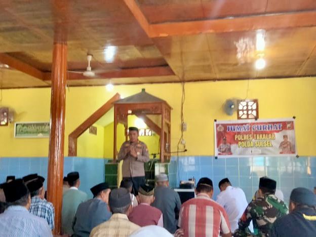 Takalar – Kasat Binmas Polres Takalar, AKP Ahmad Koembara, mewakili Kapolres Takalar AKBP Gotam Hidayat dalam kegiatan “Jumat Curhat” yang dilaksanakan di Masjid Nurul Bahari, Kelurahan Takalar, Kecamatan Mappakasunggu, Kabupaten Takalar, Jumat, 04 Oktober 2024.