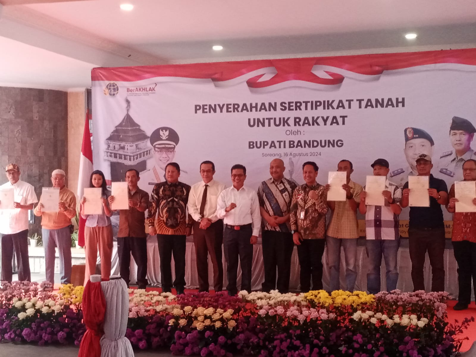 “Oleh sebab jumlah masyarakat Kabupaten Bandung yang memiliki 1.006.000 bidang tanah, sekarang tinggal menyisakan 150.000 an yang belum tersertifikasi,” ungkap Bupati Dadang Supriatna, usai serah terima sertifikat untuk masyarakat Cibodas Solokanjeruk.